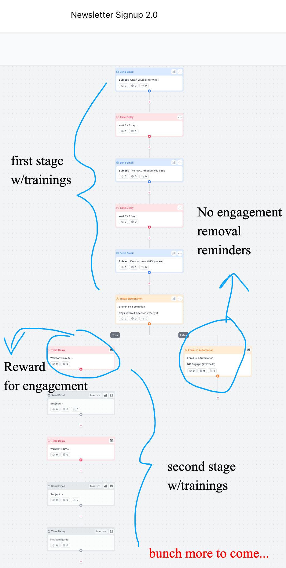 At every stage those who are inactive and or unengaging (letβs say they are not interested in what I teach) will be separated into a βunengageβ email series.