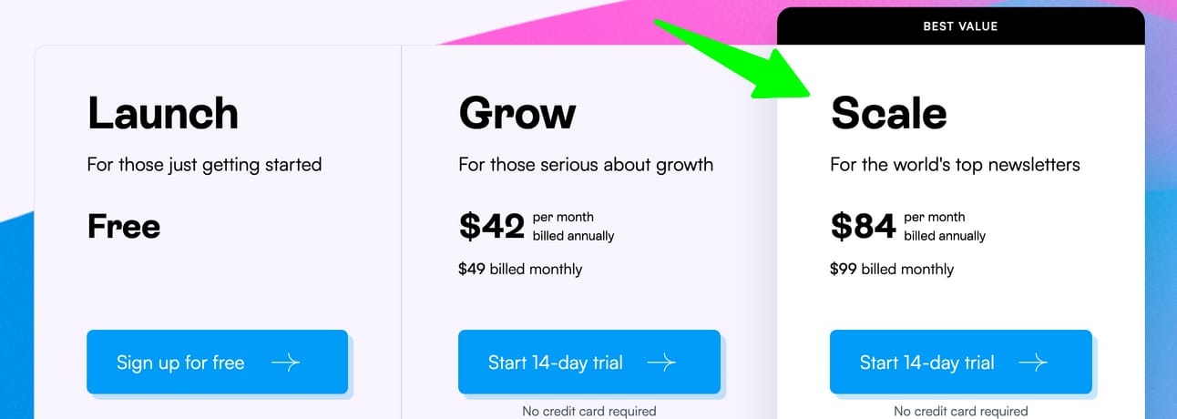 #1 - GO TO BEEHIIV AND CHOOSE βSCALE PACKAGEβ (click here)
