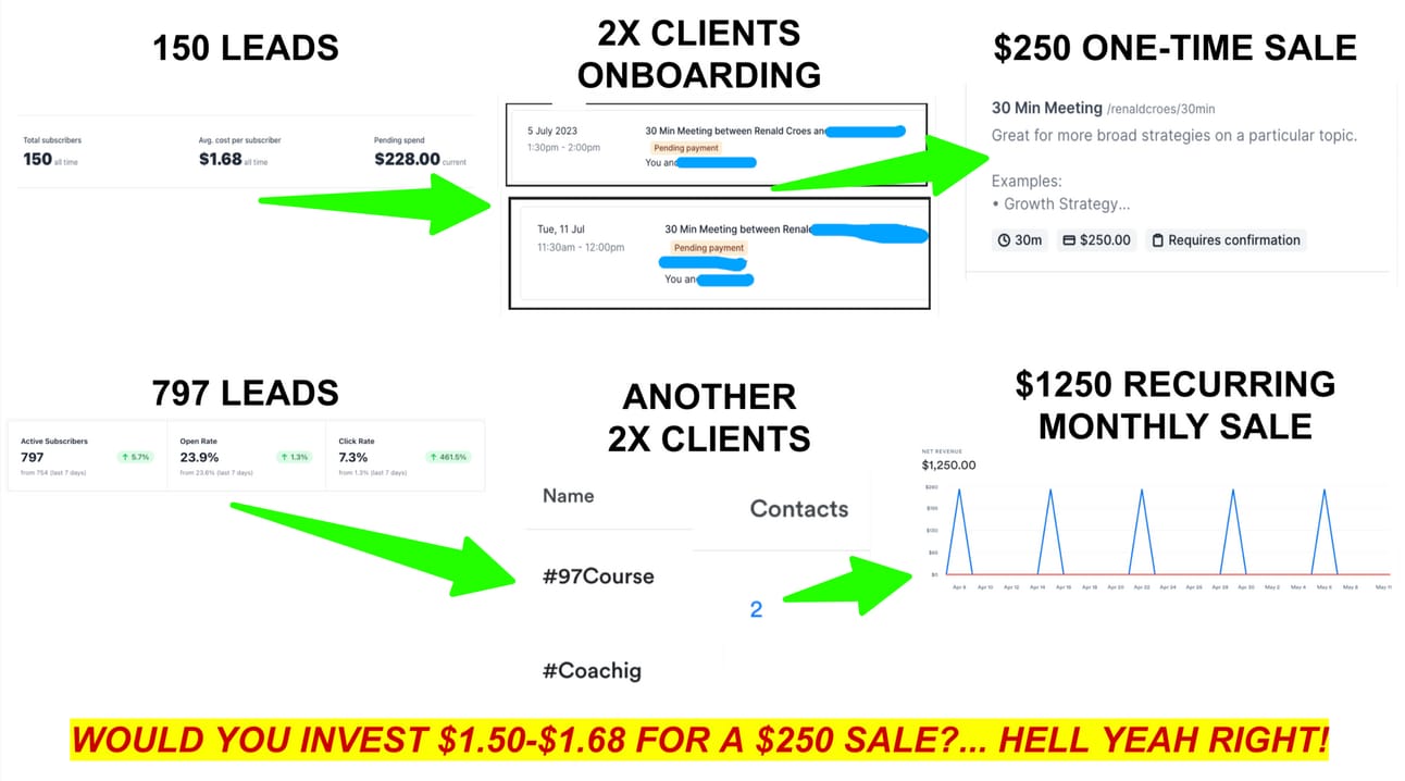 Then at 797 Leads I make $1250 in monthly recurring revenue (due to my subscription model)