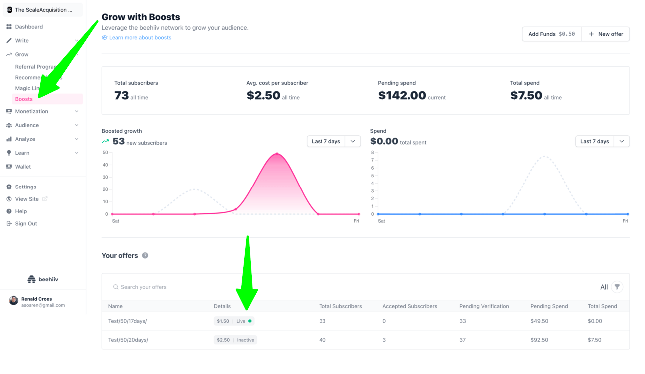 The process below is basically the same for both platforms for all platforms and the main thing is to make sure know your margins and stats but what makes Beehiiv unique is that, if you have double opt-in (verified emails) set, your regular one-time opt-in leads gets replaced and your money is reinvested into new leads thus inactive leads (not verified) gets replenished. In other words you are paying for ACTIVE SUBSCRIBERS, not just random email opt-ins.