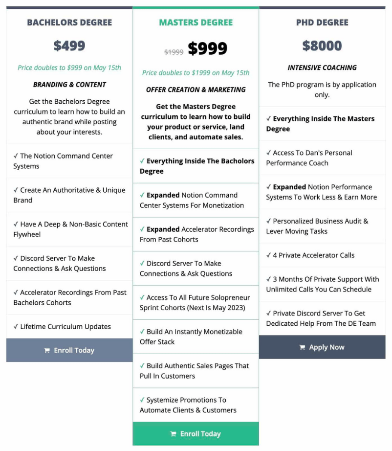 Dan has a variety of digital products and courses that heβs sold over the years but the current ones he promotes are around this pricing: